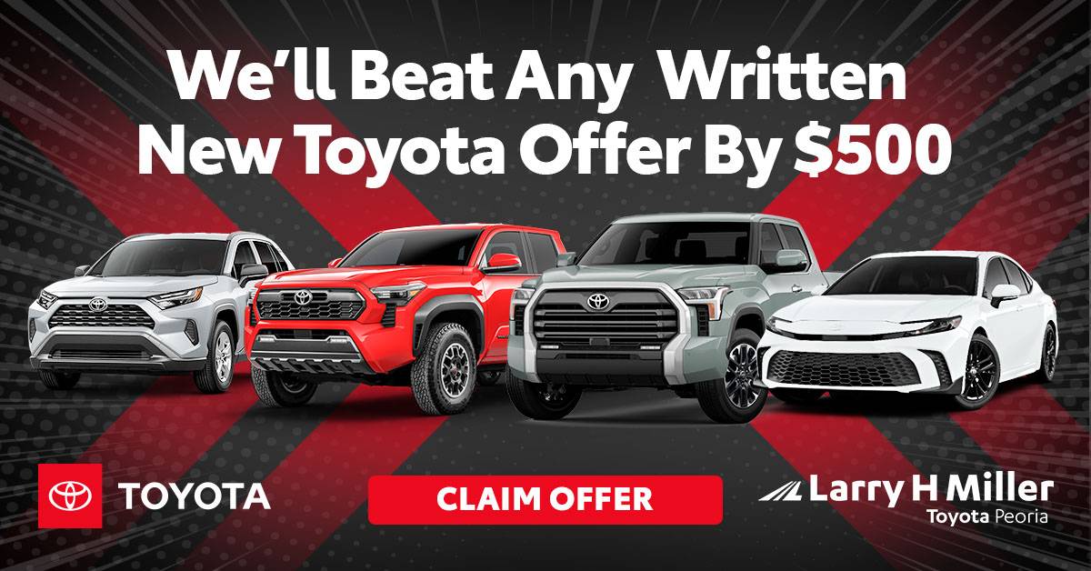 By providing your information or texting and calling us directly, you agree to receive manual, automated and pre-recorded texts, emails, and phone calls from Larry H. Miller Toyota Peoria, its parent company Asbury Automotive, and all affiliates including our manufacturer and distributor partners. These informational and marketing communications may be powered by Artificial Intelligence, tailored to give you the most guest-centric experience possible. Messages and data rates may apply.