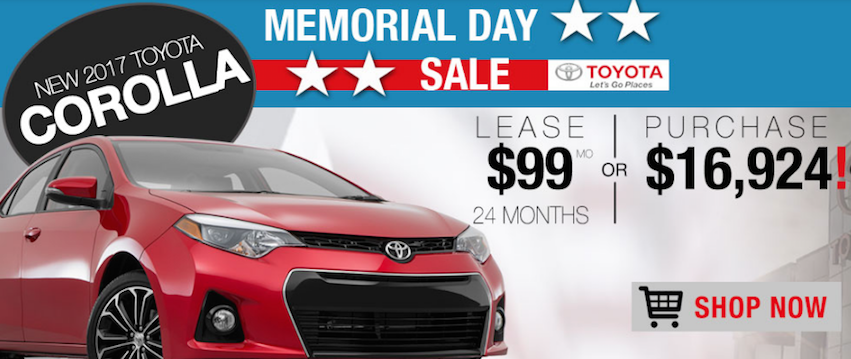 Want to drive a 2017 Toyota Corolla for $99/month? Now is the time to lease a 2017 Toyota Corolla during our Memorial Day Sale at Larry H. Miller Toyota Peoria!