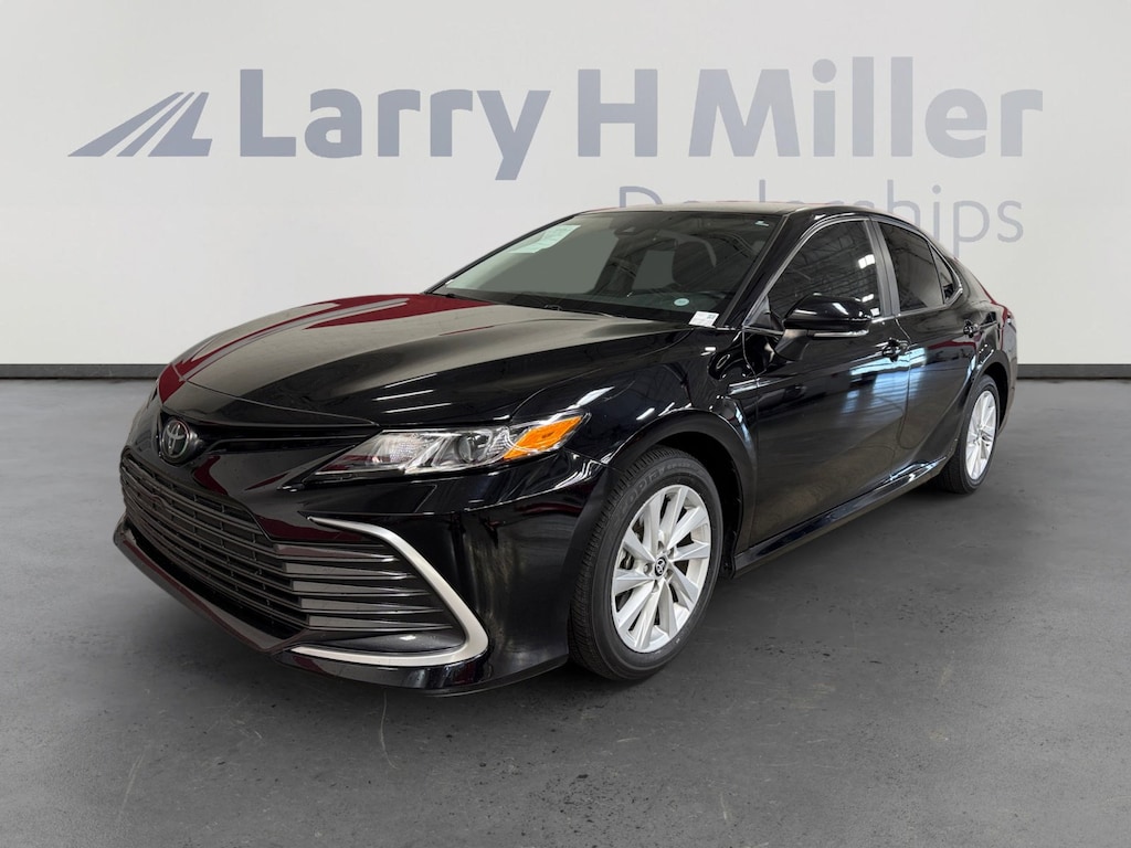 This 2023 Midnight Black Metallic Toyota Camry LE FWD is well equipped and includes these features and benefits: Toyota Gold Certified Certified, Ash Cloth, 4-Wheel Disc Brakes, 6 Speakers, 7.5J x 17 Alloy Wheels, ABS brakes, Air Conditioning, Alloy wheels, AM/FM radio: SiriusXM, Apple CarPlay/Android Auto, Auto High-beam Headlights, Automatic temperature control, Blind Spot Monitor w/Rear Cross Traffic Alert, Brake assist, Bumpers: body-color, Carpet/Trunk Mat Set (TMS), Delay-off headlights, Door Sill Enhancements (TMS), Driver door bin, Driver vanity mirror, Dual front impact airbags, Dual front side impact airbags, Electronic Stability Control, Emergency communication system: Safety Connect (1-year trial), Exterior Parking Camera Rear, Fabric Seat Trim, First Aid Kit (TMS), Four wheel independent suspension, Front anti-roll bar, Front Bucket Seats, Front Center Armrest, Front dual zone A/C, Front reading lights, Fully automatic headlights, Heated Exterior Mirrors w/Turn Signal Indicators, Illuminated entry, Knee airbag, Low tire pressure warning, Occupant sensing airbag, Outside temperature display, Overhead airbag, Overhead console, Panic alarm, Passenger door bin, Passenger vanity mirror, Power door mirrors, Power driver seat, Power steering, Power windows, Radio data system, Radio: Audio, Rear anti-roll bar, Rear Bumper Applique (TMS), Rear seat center armrest, Rear side impact airbag, Rear window defroster, Remote keyless entry, Security system, Speed control, Speed-sensing steering, Split folding rear seat, Steering wheel mounted audio controls, Tachometer, Telescoping steering wheel, Tilt steering wheel, Traction control, Trip computer, Trunk LED Bulb (TMS), and Variably intermittent wipers. Toyota Gold Certified Certified, Ash Cloth, 4-Wheel Disc Brakes, 6 Speakers, 7.5J x 17 Alloy Wheels, ABS brakes, Air Conditioning, Alloy wheels, AM/FM radio: SiriusXM, Apple CarPlay/Android Auto, Auto High-beam Headlights, Automatic temperature control, Blind Spot Monitor w/Rear Cross Traffic Alert, Brake assist, Bumpers: body-color, Carpet/Trunk Mat Set (TMS), Delay-off headlights, Door Sill Enhancements (TMS), Driver door bin, Driver vanity mirror, Dual front impact airbags, Dual front side impact airbags, Electronic Stability Control, Emergency communication system: Safety Connect (1-year trial), Exterior Parking Camera Rear, Fabric Seat Trim, First Aid Kit (TMS), Four wheel independent suspension, Front anti-roll bar, Front Bucket Seats, Front Center Armrest, Front dual zone A/C, Front reading lights, Fully automatic headlights, Heated Exterior Mirrors w/Turn Signal Indicators, Illuminated entry, Knee airbag, Low tire pressure warning, Occupant sensing airbag, Outside temperature display, Overhead airbag, Overhead console, Panic alarm, Passenger door bin, Passenger vanity mirror, Power door mirrors, Power driver seat, Power steering, Power windows, Radio data system, Radio: Audio, Rear anti-roll bar, Rear Bumper Applique (TMS), Rear seat center armrest, Rear side impact airbag, Rear window defroster, Remote keyless entry, Security system, Speed control, Speed-sensing steering, Split folding rear seat, Steering wheel mounted audio controls, Tachometer, Telescoping steering