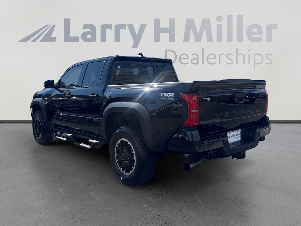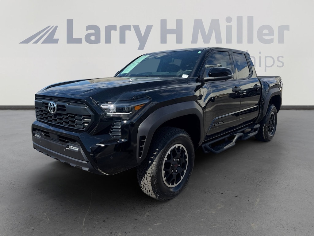 This 2025 Black Toyota Tacoma TRD Offroad 4WD is well equipped and includes these features and benefits: Toyota Gold Certified Certified, 4WD, 3.583 Axle Ratio, 4-Wheel Disc Brakes, 6 Speakers, ABS brakes, Air Conditioning, Alloy wheels, AM/FM radio: SiriusXM, Anti-whiplash front head restraints, Apple CarPlay/Android Auto, Auto High-beam Headlights, Auto-dimming Rear-View mirror, Automatic temperature control, Brake assist, Bumpers: body-color, Driver door bin, Driver vanity mirror, Dual front impact airbags, Dual front side impact airbags, Electronic Stability Control, Emergency communication system: Safety Connect (1-year trial), Exterior Parking Camera Rear, Fabric Seat Trim, Four wheel independent suspension, Front anti-roll bar, Front Bucket Seats, Front Center Armrest, Front fog lights, Front reading lights, Fully automatic headlights, Heated door mirrors, Illuminated entry, Knee airbag, Leather Shift Knob, Leather steering wheel, Low tire pressure warning, Occupant sensing airbag, Outside temperature display, Overhead airbag, Overhead console, Panic alarm, Passenger door bin, Passenger vanity mirror, Power door mirrors, Power steering, Power windows, Radio: 8 Toyota Audio Multimedia, Rear step bumper, Rear window defroster, Remote keyless entry, Security system, Speed control, Speed-sensing steering, Split folding rear seat, Steering wheel mounted audio controls, Tachometer, Telescoping steering wheel, Tilt steering wheel, Traction control, Trip computer, Turn signal indicator mirrors, Variably intermittent wipers, and Wheels: 17 TRD Off-Road Alloy. Toyota Gold Certified Certified, 4WD, 3.583 Axle Ratio, 4-Wheel Disc Brakes, 6 Speakers, ABS brakes, Air Conditioning, Alloy wheels, AM/FM radio: SiriusXM, Anti-whiplash front head restraints, Apple CarPlay/Android Auto, Auto High-beam Headlights, Auto-dimming Rear-View mirror, Automatic temperature control, Brake assist, Bumpers: body-color, Driver door bin, Driver vanity mirror, Dual front impact airbags, Dual front side impact airbags, Electronic Stability Control, Emergency communication system: Safety Connect (1-year trial), Exterior Parking Camera Rear, Fabric Seat Trim, Four wheel independent suspension, Front anti-roll bar, Front Bucket Seats, Front Center Armrest, Front fog lights, Front reading lights, Fully automatic headlights, Heated door mirrors, Illuminated entry, Knee airbag, Leather Shift Knob, Leather steering wheel, Low tire pressure warning, Occupant sensing airbag, Outside temperature display, Overhead airbag, Overhead console, Panic alarm, Passenger door bin, Passenger vanity mirror, Power door mirrors, Power steering, Power windows, Radio: 8 Toyota Audio Multimedia, Rear step bumper, Rear window defroster, Remote keyless entry, Security system, Speed control, Speed-sensing steering, Split folding rear seat, Steering wheel mounted audio controls, Tachometer, Telescoping steering wheel, Tilt steering wheel, Traction control, Trip computer, Turn signal indicator mirrors, Variably intermittent wipers, Wheels: 17 TRD Off-Road Alloy, 4WD.