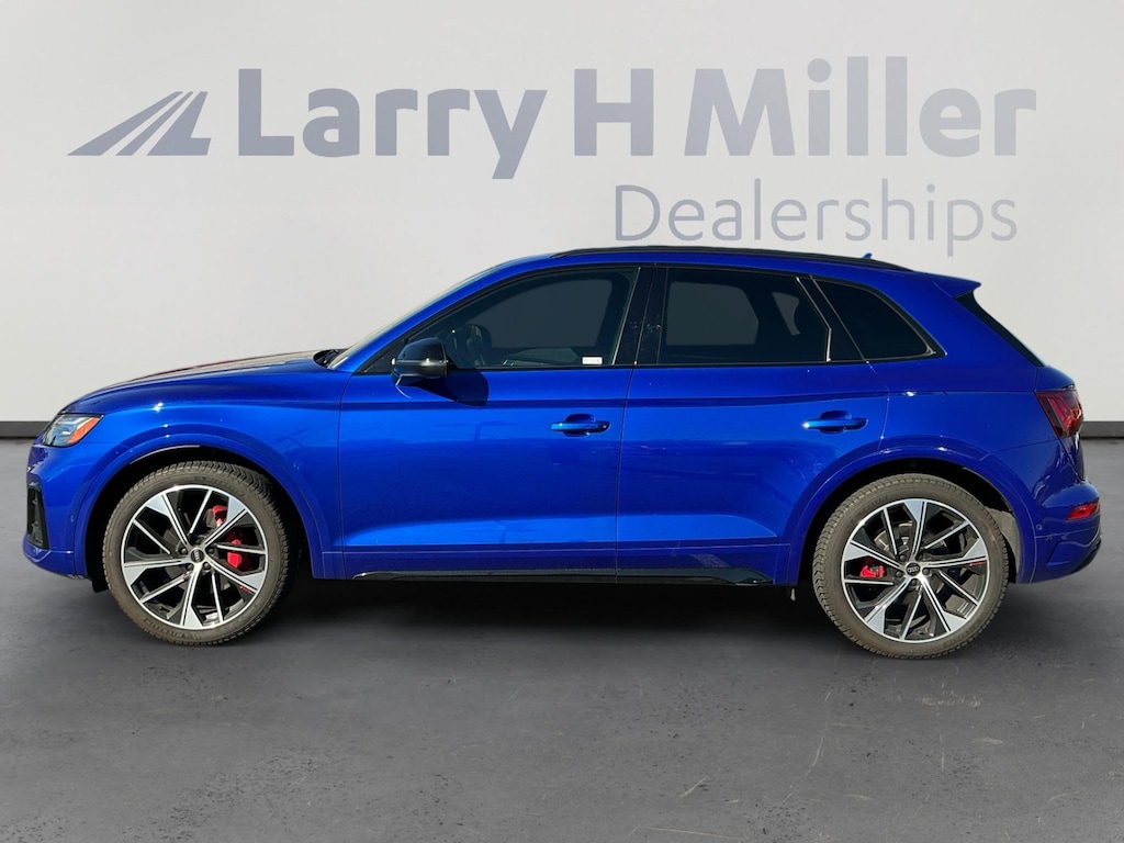 This 2023 Blue Metallic Audi SQ5 Prestige AWD is well equipped and includes these features and benefits: 21 Black Optic Wheel Package (Wheels: 21 5-V Spoke-Offset Design), Black Optic Package (Black Exterior Mirror Housings, Black Exterior Trim, and Wheels: 20 5-V Spoke-Star Design), Convenience Package (Audi Advanced Key, Auto-Dimming Power Folding Exterior Mirrors, Driver Seat Memory, Heated Steering Wheel, and SiriusXM w/360L), Fine Nappa Leather Seats (Fine Nappa Leather Seating Surfaces), LED Interior Lighting Plus Package, Navigation Package (Radio: MMI Navigation Plus), Prestige Package (Animation for Headlights & Taillights, Audi Active Lane Assist, Audi Phone Box, Audi Virtual Cockpit Plus, Bang & Olufsen 3D Sound System, Dual Pane Acoustic Glass for Front Side Windows, Hands-On Detection Steering Wheel, Head-Up Display, Heated & Cooled Front Cupholder, Heated Rear Seats, Leatherette Covered Center Console, Matrix-Design LED Headlights w/Headlight Washers, OLED Taillights, Panoramic Sunroof, Park Assist, Top View Camera System, Traffic Jam Assist, and Traffic Sign Recognition), S Sport Package (Red Brake Calipers, Sport Adaptive Air Suspension, and Sport Rear Differential), 10 Speakers, 3.204 Axle Ratio, 4-Wheel Disc Brakes, ABS brakes, Adaptive suspension, Air Conditioning, Alloy wheels, AM/FM radio, AM/FM Stereo, Audi S Beam - Front Doors Only, Auto High-beam Headlights, Auto-dimming Rear-View mirror, Automatic temperature control, Brake assist, Bumpers: body-color, Compass, Delay-off headlights, Driver door bin, Driver vanity mirror, Dual front impact airbags, Dual front side impact airbags, Electronic Stability Control, Emergency communication system: Audi connect CARE, Exterior Parking Camera Rear, Four wheel independent suspension, Front anti-roll bar, Front Bucket Seats, Front Center Armrest, Front dual zone A/C, Front fog lights, Front reading lights, Garage door transmitter: HomeLink, Heated door mirrors, Heated front seats, Heated Front Sport Seats, Heated/Cooled Cupholder Delete (DISC), Illuminated entry, Integrated Toll Module Delete (DISC), Leather Shift Knob, Leather/Dinamica Seating Surfaces, Low tire pressure warning, Occupant sensing airbag, Outside temperature display, Overhead airbag, Overhead console, Panic alarm, Passenger door bin, Passenger vanity mirror, Power door mirrors, Power driver seat, Power Liftgate, Power passenger seat, Power steering, Power windows, Radio data system, Rain sensing wipers, Rear air conditioning, Rear anti-roll bar, Rear fog lights, Rear reading lights, Rear seat center armrest, Rear window defroster, Rear window wiper, Remote keyless entry, Roof rack, Security system, Speed control, Speed-sensing steering, Speed-Sensitive Wipers, Split folding rear seat, Spoiler, Sport Exhaust Tips, Sport steering wheel, Steering wheel mounted audio controls, Tachometer, Telescoping steering wheel, Tilt steering wheel, Traction control, Trip computer, Turn signal indicator mirrors, Variably intermittent wipers, and Wheels: 20 10-Spoke-Star Design. 10 Speakers, 21 Black Optic Wheel Package, 3.204 Axle Ratio, 4-Wheel Disc Brakes, ABS brakes, Adaptive suspension, Air Conditioning, Alloy wheels, AM/FM radio, AM/FM Stereo, Animation for Headlights & Taillights, Audi Active Lane Assist, Audi Advanced Key, Audi Phone Box, Audi S Beam - Front Doors Only, Audi Virtual Cockpit Plus, Auto High-beam Headlights, Auto-Dimming Power Folding Exterior Mirrors, Auto-dimming Rear-View mirror, Automatic temperature control, Bang & Olufsen 3D Sound System, Black Exterior Mirror Housings, Black Exterior Trim, Black Optic Package, Brake assist, Bumpers: body-color, Compass, Convenience Package, Delay-off headlights, Driver door bin, Driver Seat Memory, Driver vanity mirror, Dual front impact airbags, Dual front side impact airbags, Dual Pane Acoustic Glass for Front Side Windows, Electronic Stability Control, Emergency communication system: Audi connect CARE, Exterior Parki