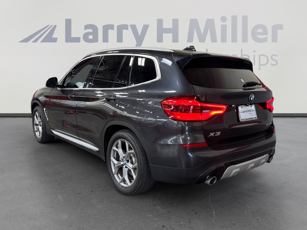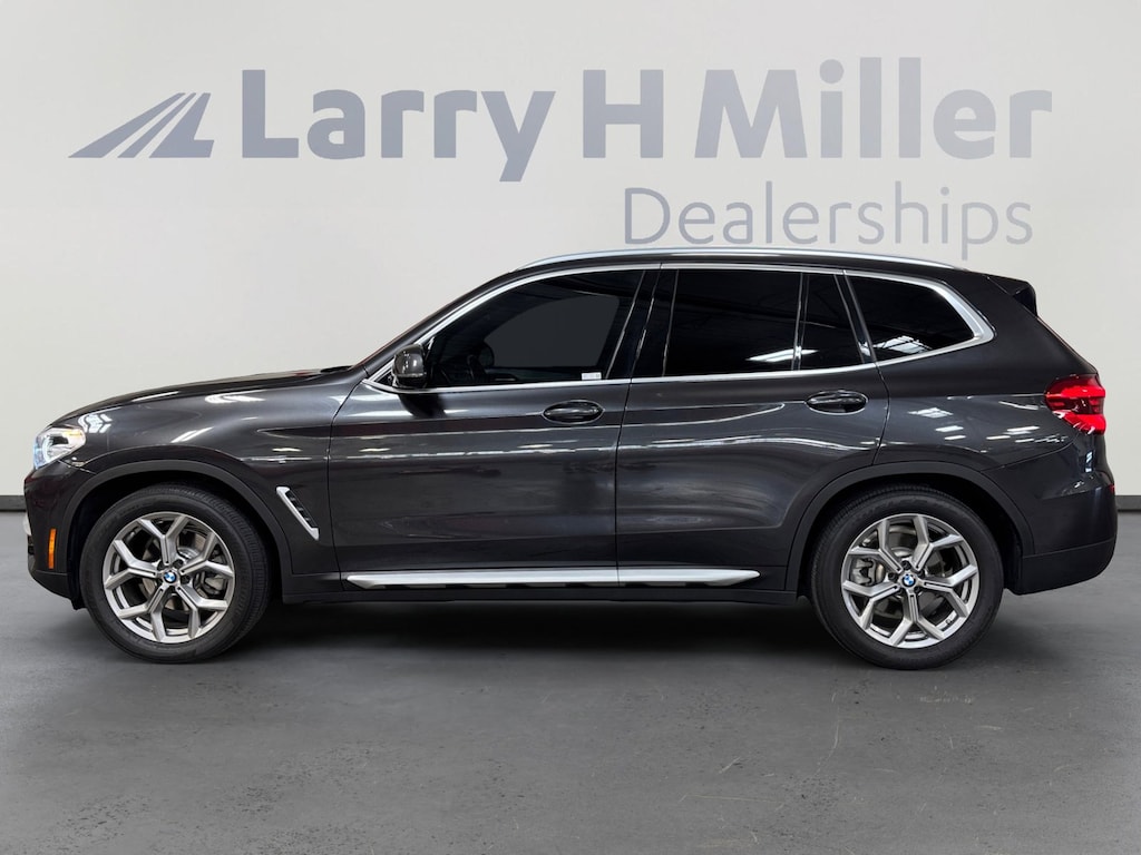 This 2020 Dark Graphite Metallic BMW X3 sDrive30i RWD is well equipped and includes these features and benefits: Connected Package Plus, 8-Speed Automatic, 12 Speakers, 3.385 Axle Ratio, 4-Wheel Disc Brakes, ABS brakes, ACC Stop & Go + Active Driving Assistant, Active Blind Spot Detection, Air Conditioning, Alloy wheels, Aluminum Interior Trim, AM/FM radio, Ambient Lighting, Apple CarPlay Compatibility, Apple CarPlay Compatibility with 1-year trial, Auto-dimming door mirrors, Auto-dimming Rear-View mirror, Automatic temperature control, BMW Assist eCall, BMW TeleServices, Brake assist, Bumpers: body-color, Comfort Access Keyless Entry, ConnectedDrive Services, Delay-off headlights, Driver door bin, Driver vanity mirror, Dual front impact airbags, Dual front side impact airbags, DVD Area Coding (North America), Electronic Stability Control, Emergency communication system: BMW Assist eCall, Exterior Parking Camera Rear, Four wheel independent suspension, Front anti-roll bar, Front Bucket Seats, Front Center Armrest, Front dual zone A/C, Front fog lights, Front reading lights, Fully automatic headlights, Garage door transmitter, Genuine wood dashboard insert, Genuine wood door panel insert, Hands-Free Bluetooth & USB Audio Connection, Heated door mirrors, Heated Front Seats, Hi-Fi Sound System, Illuminated entry, Knee airbag, Lane Departure Warning System, Low tire pressure warning, Lumbar Support, Memory seat, Navigation, Navigation System, Occupant sensing airbag, Outside temperature display, Overhead airbag, Panic alarm, Panoramic Moonroof, Passenger door bin, Passenger vanity mirror, Power door mirrors, Power driver seat, Power Front Seats, Power Liftgate, Power passenger seat, Power steering, Power windows, Radio Control US, Radio data system, Radio: AM/FM Stereo w/HD, Rain sensing wipers, Rear air conditioning, Rear anti-roll bar, Rear reading lights, Rear seat center armrest, Rear window defroster, Rear window wiper, Remote keyless entry, Roof rack: rails only, Security system, SensaTec Upholstery, SiriusXM Satellite Radio, Speed control, Speed-sensing steering, Speed-Sensitive Wipers, Split folding rear seat, Spoiler, Sport Bucket Seats, Sport steering wheel, Steering wheel mounted audio controls, Tachometer, Telescoping steering wheel, Tilt steering wheel, Traction control, Trip computer, Turn signal indicator mirrors, Variably intermittent wipers, Wheels: 18 x 7.0 Y-Spoke (Style 688), and Wheels: 19 x 7.5 Y-Spoke (Style 693) 8-Speed Automatic, 12 Speakers, 3.385 Axle Ratio, 4-Wheel Disc Brakes, ABS brakes, ACC Stop & Go + Active Driving Assistant, Active Blind Spot Detection, Air Conditioning, Alloy wheels, Aluminum Interior Trim, AM/FM radio, Ambient Lighting, Apple CarPlay Compatibility, Apple CarPlay Compatibility with 1-year trial, Auto-dimming door mirrors, Auto-dimming Rear-View mirror, Automatic temperature control, BMW Assist eCall, BMW TeleServices, Brake assist, Bumpers: body-color, Comfort Access Keyless Entry, Connected Package Plus, ConnectedDrive Services, Delay-off headlights, Driver door bin, Driver vanity mirror, Dual front impact airbags, Dual front side impact airbags, DVD Area Coding (North America), Electronic Stability Control, Emergency communication system: BMW Assist eCall, Exterior Parking Camera Rear, Four wheel independent suspension, Front anti-roll bar, Front Bucket Seats, Front Center Armrest, Front dual zone A/C, Front fog lights, Front reading lights, Fully automatic headlights, Garage door transmitter, Genuine wood dashboard insert, Genuine wood door panel insert, Hands-Free Bluetooth & USB Audio Connection, Heated door mirrors, Heated Front Seats, Hi-Fi Sound System, Illuminated entry, Knee airbag, Lane Departure Warning System, Low tire pressure warning, Lumbar Support, Memory seat, Navigation, Navigation System, Occupant sensing airbag, Outside temperature display, Overhead airbag, Panic alarm, Panoramic Moonroof, Passenger door bin, Passenger vanity mi