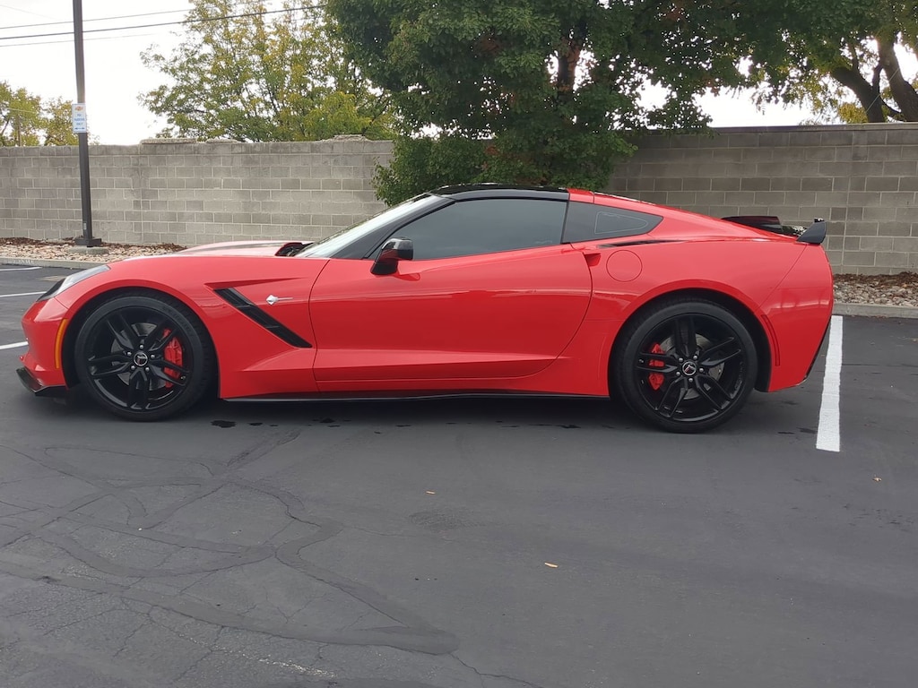 Ward's 10 Best Engines. Only 26,770 Miles! Scores 29 Highway MPG and 17 City MPG! This Chevrolet Corvette Stingray boasts a Gas V8 6.2L/376 engine powering it's sleek transmission. ENGINE, 6.2L (376 CI) V8 DI (455 hp [339.3 kW] @ 6000 rpm, 460 lb-ft of torque [621.0 N-m] @ 4600 rpm) (STD), Wipers, front intermittent, Windows, power with driver and passenger Express-Down/Up.* This Chevrolet Corvette Stingray Features the Following Options *Wheels, 5-split spoke, Silver-painted aluminum 19" x 8.5" (48.3 cm x 21.6 cm) front and 20" x 10" (50.8 cm x 25.4 cm) rear, Visors, driver and passenger illuminated vanity mirrors, Universal Home Remote includes garage door opener, 3-channel programmable, located on driver visor, Transmission, 7-speed manual with Active Rev Matching with Z51 performance ratios, Traction control, all-speed, Tires, P245/35ZR19 front and P285/30ZR20 rear, performance, run flat, Theft-deterrent system, vehicle, push button start, immobilizer and audible visual alarm, Theft-deterrent system, body security content and unauthorized entry electrical, Suspension, Z51 performance, Storage, with electric locking glovebox, behind screen storage, center console and rear compartment with cover.* This Chevrolet Corvette Stingray is a Superstar! *Ward's 10 Best Engines, NACTOY 2014 North American Car of the Year, KBB.com Brand Image Awards.* The Experts' Verdict...*As reported by KBB.com: If you like the idea of owning unimaginably good horsepower and performance value, and controlling it from a Ritz-Carlton of an interior, the Corvette Stingray couldnât make more sense.* Stop By Today *You've earned this- stop by Larry H Miller Chevrolet Murray located at 5500 South State St, Murray, UT 84107 to make this car yours today!