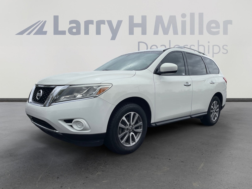 This 2013 Moonlight White Nissan Pathfinder SV FWD is well equipped and includes these features and benefits: 18 Alloy Wheels, 3rd row seats: bench, 4-Wheel Disc Brakes, 5.577 Axle Ratio, 6 Speakers, ABS brakes, Air Conditioning, Alloy wheels, AM/FM radio: SiriusXM, Automatic temperature control, Brake assist, Bumpers: body-color, CD player, Cloth Seat Trim, Driver door bin, Driver vanity mirror, Dual front impact airbags, Dual front side impact airbags, Electronic Stability Control, Exterior Parking Camera Rear, Four wheel independent suspension, Front anti-roll bar, Front Bucket Seats, Front Center Armrest w/Storage, Front dual zone A/C, Front reading lights, Fully automatic headlights, Illuminated entry, Leather Shift Knob, Leather steering wheel, Low tire pressure warning, Occupant sensing airbag, Outside temperature display, Overhead airbag, Overhead console, Panic alarm, Passenger door bin, Passenger vanity mirror, Power door mirrors, Power driver seat, Power steering, Power windows, Radio data system, Radio: AM/FM/RDS/MP3/1CD Audio System w/6-Speakers, Rear air conditioning, Rear anti-roll bar, Rear Parking Sensors, Rear reading lights, Rear seat center armrest, Rear window defroster, Rear window wiper, Reclining 3rd row seat, Remote keyless entry, Roof rack: rails only, Security system, Speed control, Speed-sensing steering, Speed-Sensitive Wipers, Split folding rear seat, Spoiler, Steering wheel mounted audio controls, Tachometer, Telescoping steering wheel, Tilt steering wheel, Traction control, Trip computer, Variably intermittent wipers, and Voltmeter. 18 Alloy Wheels, 3rd row seats: bench, 4-Wheel Disc Brakes, 5.577 Axle Ratio, 6 Speakers, ABS brakes, Air Conditioning, Alloy wheels, AM/FM radio: SiriusXM, Automatic temperature control, Brake assist, Bumpers: body-color, CD player, Cloth Seat Trim, Driver door bin, Driver vanity mirror, Dual front impact airbags, Dual front side impact airbags, Electronic Stability Control, Exterior Parking Camera Rear, Four wheel independent suspension, Front anti-roll bar, Front Bucket Seats, Front Center Armrest w/Storage, Front dual zone A/C, Front reading lights, Fully automatic headlights, Illuminated entry, Leather Shift Knob, Leather steering wheel, Low tire pressure warning, Occupant sensing airbag, Outside temperature display, Overhead airbag, Overhead console, Panic alarm, Passenger door bin, Passenger vanity mirror, Power door mirrors, Power driver seat, Power steering, Power windows, Radio data system, Radio: AM/FM/RDS/MP3/1CD Audio System w/6-Speakers, Rear air conditioning, Rear anti-roll bar, Rear Parking Sensors, Rear reading lights, Rear seat center armrest, Rear window defroster, Rear window wiper, Reclining 3rd row seat, Remote keyless entry, Roof rack: rails only, Security system, Speed control, Speed-sensing steering, Speed-Sensitive Wipers, Split folding rear seat, Spoiler, Steering wheel mounted audio controls, Tachometer, Telescoping steering wheel, Tilt steering wheel, Traction control, Trip computer, Variably intermittent wipers, Voltmeter.