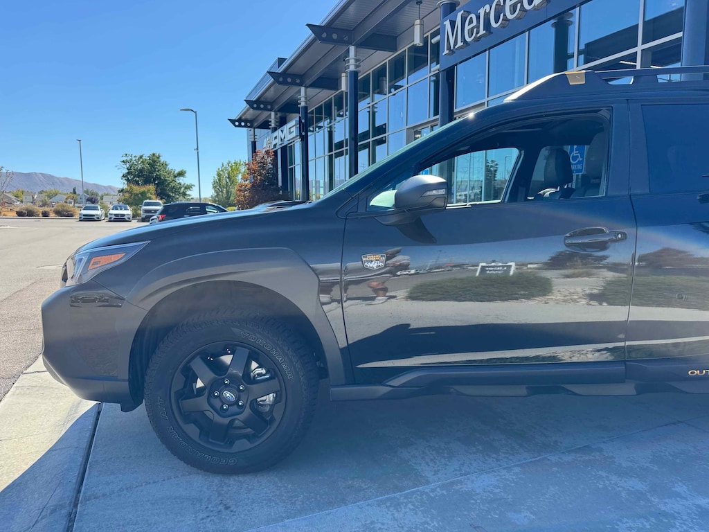 Mercedes-Benz of Draper proudly offers this 2024 Crystal Black Silica Subaru Outback Wilderness AWD . It is well equipped and includes these features and benefits: Power Moonroof & Navigation & RAB (Power Moonroof, Radio: Subaru STARLINK 11.6 Multimedia Nav System, and Reverse Automatic Braking (RAB) System), 12 Speakers, 4-Wheel Disc Brakes, 4.444 Axle Ratio, ABS brakes, Air Conditioning, Alloy wheels, AM/FM radio: SiriusXM, Anodized Copper Side Rear Window Exterior Graphics, Auto High-beam Headlights, Auto-Dimming Exterior Mirror w/Approach Light, Auto-dimming Rear-View mirror, Automatic temperature control, Brake assist, Cargo Net, Cargo Sidewall Protector, Compass, Driver door bin, Driver vanity mirror, Dual front impact airbags, Dual front side impact airbags, Electronic Stability Control, Emergency communication system: STARLINK Safety Plus (3-year free trial), Exterior Parking Camera Rear, Four wheel independent suspension, Front anti-roll bar, Front Bucket Seats, Front Center Armrest w/Storage, Front dual zone A/C, Front fog lights, Front reading lights, Fully automatic headlights, Garage door transmitter: HomeLink, harman/kardon® Speakers, Heated door mirrors, Heated Front Bucket Seats, Heated front seats, Heated rear seats, Heated steering wheel, Illuminated entry, Knee airbag, Leather steering wheel, LED Upgrade, Low tire pressure warning, Occupant sensing airbag, Outside temperature display, Overhead airbag, Overhead console, Panic alarm, Passenger door bin, Passenger vanity mirror, Power door mirrors, Power driver seat, Power Liftgate, Power passenger seat, Power steering, Power windows, Radio: Subaru STARLINK 11.6 Multimedia Plus Sys, Rear anti-roll bar, Rear seat center armrest, Rear window defroster, Rear window wiper, Remote keyless entry, Roof rack, Security system, Speed control, Speed-sensing steering, Split folding rear seat, Spoiler, StarTex-Trimmed Upholstery, Steering wheel mounted audio controls, Tachometer, Telescoping steering wheel, Tilt steering wheel, Traction control, Trip computer, Turn signal indicator mirrors, Variably intermittent wipers, Wheels: 17 x 7J Matte Black Aluminum-Alloy, Windshield Sunshade, and Wireless Charger.