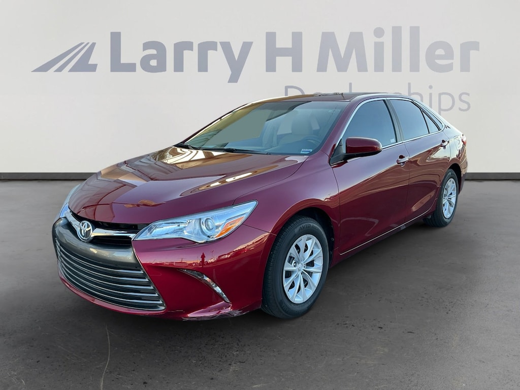 This 2015 Ruby Flare Pearl Toyota Camry LE FWD is well equipped and includes these features and benefits: Cloth, 4-Wheel Disc Brakes, 6 Speakers, ABS brakes, Air Conditioning, AM/FM radio, Brake assist, Bumpers: body-color, CD player, Delay-off headlights, Driver door bin, Driver vanity mirror, Dual front impact airbags, Dual front side impact airbags, Electronic Stability Control, Exterior Parking Camera Rear, Fabric Seat Trim, Four wheel independent suspension, Front anti-roll bar, Front Bucket Seats, Front Center Armrest, Front reading lights, Fully automatic headlights, Heated door mirrors, Illuminated entry, Knee airbag, Low tire pressure warning, Occupant sensing airbag, Outside temperature display, Overhead airbag, Overhead console, Panic alarm, Passenger door bin, Passenger vanity mirror, Power door mirrors, Power driver seat, Power steering, Power windows, Radio: Entune Audio, Rear anti-roll bar, Rear seat center armrest, Rear side impact airbag, Rear window defroster, Remote keyless entry, Speed control, Speed-sensing steering, Split folding rear seat, Steering wheel mounted audio controls, Tachometer, Telescoping steering wheel, Tilt steering wheel, Traction control, Trip computer, Variably intermittent wipers, and Wheels: 7.0J x 16 Steel. Cloth, 4-Wheel Disc Brakes, 6 Speakers, ABS brakes, Air Conditioning, AM/FM radio, Brake assist, Bumpers: body-color, CD player, Delay-off headlights, Driver door bin, Driver vanity mirror, Dual front impact airbags, Dual front side impact airbags, Electronic Stability Control, Exterior Parking Camera Rear, Fabric Seat Trim, Four wheel independent suspension, Front anti-roll bar, Front Bucket Seats, Front Center Armrest, Front reading lights, Fully automatic headlights, Heated door mirrors, Illuminated entry, Knee airbag, Low tire pressure warning, Occupant sensing airbag, Outside temperature display, Overhead airbag, Overhead console, Panic alarm, Passenger door bin, Passenger vanity mirror, Power door mirrors, Power driver seat, Power steering, Power windows, Radio: Entune Audio, Rear anti-roll bar, Rear seat center armrest, Rear side impact airbag, Rear window defroster, Remote keyless entry, Speed control, Speed-sensing steering, Split folding rear seat, Steering wheel mounted audio controls, Tachometer, Telescoping steering wheel, Tilt steering wheel, Traction control, Trip computer, Variably intermittent wipers, Wheels: 7.0J x 16 Steel, Cloth.