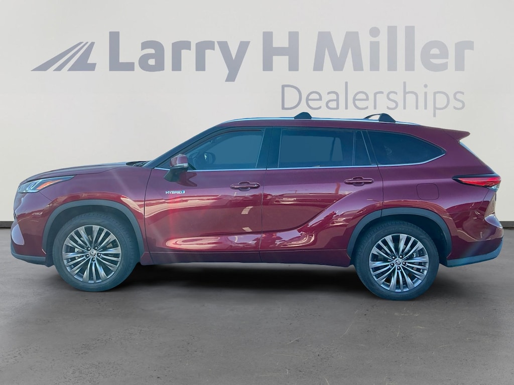 This 2021 Ruby Flare Pearl Toyota Highlander Hybrid Platinum FWD is well equipped and includes these features and benefits: Toyota Gold Certified Certified, 2.5L I4 PDI Hybrid DOHC 16V LEV3-SULEV30 186hp, 11 Speakers, 3rd row seats: split-bench, 4-Wheel Disc Brakes, ABS brakes, Air Conditioning, Alloy wheels, AM/FM radio: SiriusXM, Apple CarPlay/Android Auto, Auto High-beam Headlights, Auto-dimming Rear-View mirror, Automatic temperature control, Axle Ratio TBD, Brake assist, Bumpers: body-color, Delay-off headlights, Driver door bin, Driver vanity mirror, Dual front impact airbags, Dual front side impact airbags, Electronic Rear-View Mirror, Electronic Stability Control, Emergency communication system: Safety Connect with 1-year trial, Four wheel independent suspension, Front anti-roll bar, Front Bucket Seats, Front Center Armrest, Front dual zone A/C, Front fog lights, Front reading lights, Fully automatic headlights, Garage door transmitter: HomeLink, Heads-Up Display, Heated & Ventilated Front Bucket Seats, Heated door mirrors, Heated front seats, Heated rear seats, Heated steering wheel, High Grade LED, Illuminated entry, Knee airbag, Leather Seat Trim, Leather Shift Knob, Low tire pressure warning, Memory seat, Navigation system: Dynamic Navigation (3-year trial), Occupant sensing airbag, Outside temperature display, Overhead airbag, Overhead console, Panic alarm, Panoramic Moonroof, Panoramic View Monitor, Passenger door bin, Passenger vanity mirror, Power door mirrors, Power driver seat, Power Liftgate, Power moonroof, Power passenger seat, Power steering, Power windows, Radio: JBL Premium Audio w/Navigation System, Rain sensing wipers, Rear air conditioning, Rear anti-roll bar, Rear reading lights, Rear window defroster, Rear window wiper, Reclining 3rd row seat, Remote keyless entry, Roof rack: rails only, Security system, Speed control, Speed-sensing steering, Split folding rear seat, Spoiler, Steering wheel mounted audio controls, Telescoping steering wheel, Tilt steering wheel, Traction control, Trip computer, Turn signal indicator mirrors, Variably intermittent wipers, Ventilated front seats, and Wheels: 20 Platinum Alloy. Toyota Gold Certified Certified, 2.5L I4 PDI Hybrid DOHC 16V LEV3-SULEV30 186hp, 11 Speakers, 3rd row seats: split-bench, 4-Wheel Disc Brakes, ABS brakes, Air Conditioning, Alloy wheels, AM/FM radio: SiriusXM, Apple CarPlay/Android Auto, Auto High-beam Headlights, Auto-dimming Rear-View mirror, Automatic temperature control, Axle Ratio TBD, Brake assist, Bumpers: body-color, Delay-off headlights, Driver door bin, Driver vanity mirror, Dual front impact airbags, Dual front side impact airbags, Electronic Rear-View Mirror, Electronic Stability Control, Emergency communication system: Safety Connect with 1-year trial, Four wheel independent suspension, Front anti-roll bar, Front Bucket Seats, Front Center Armrest, Front dual zone A/C, Front fog lights, Front reading lights, Fully automatic headlights, Garage door transmitter: HomeLink, Heads-Up Display, Heated & Ventilated Front Bucket Seats, Heated door mirrors, Heated front seats, Heated rear seats, Heated steering wheel, High Grade LED, Illuminated entry, Knee airbag, Leather Seat Trim, Leather Shift Knob, L